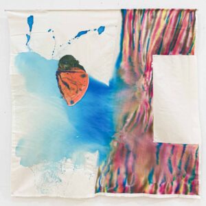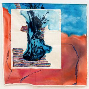 Through microscopic observation, the artist gains a new perspective on natural landscapes while revealing the impact of human activity on the environment. Her series—including Sandy Wastes, Pools, Melting, and Circle Crops—typically use ink, acrylic, and mixed media on fabric or paper. Fluid lines and abstract structures depict natural forms like water currents, sedimentary layers, and surface textures. By emphasizing nature’s microscopic life force, she invites viewers to reconnect with the natural world, using abstract imagery to draw attention to overlooked details.