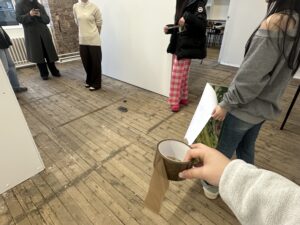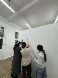 After the content framework became clearer, the group members went to Summer Hall for a field study on Thursday and made preliminary plans and size measurements for the placement of all the works. By actually entering the exhibition hall environment, they recorded and analyzed the wall dimensions, spatial flow, distances between the works, and the possible viewing paths of the audience. This practical process made me realize that curating is not merely the design of theoretical narrative structures, but rather a highly space-dependent practical work. Many painting works and art installations seem to be arranged reasonably on the floor plan, but in the actual exhibition space, they need to be re-adjusted. For example, larger art installations require a larger viewing distance visually, and their placement will affect the organization of the overall flow. These details can only be truly understood after the field study.