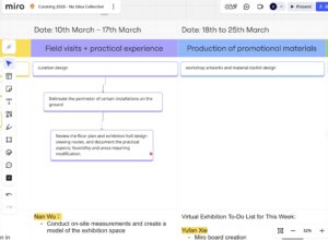 The key focus of this week’s collective exhibition planning was centered around deepening the content of the group exhibition, determining the artworks to be exhibited, conducting on-site inspections of the exhibition space and planning the layout of the works. At the same time, the preliminary calculation of the exhibition budget and the systematic organization of the artists’ information for the exhibition were completed. This stage of work marks the gradual transition of the project from the initial concept planning to the implementation stage, creating a real connection between the curatorial concept and the actual space, and laying the foundation for the subsequent work process.