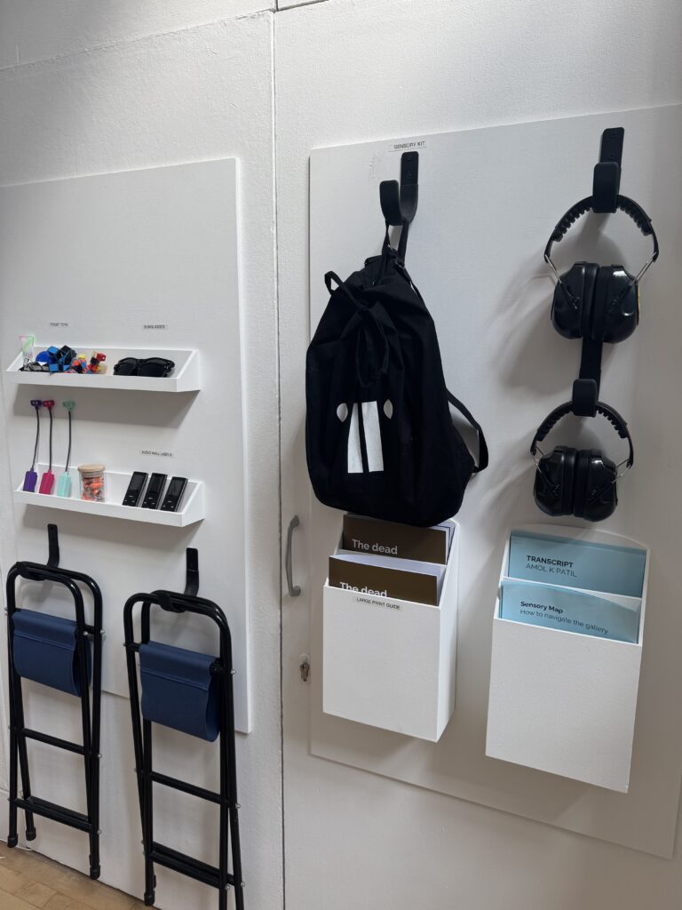 Beyond the profound impression left by the exhibition’s content, their sensory design offers valuable lessons I intend to incorporate into my own curatorial projects: sunglasses provided at the entrance (to accommodate light-sensitive visitors due to varying lighting in different galleries), headphones/earbuds (allowing visitors to adjust the sound environment), fidget toys (to relieve anxiety), sensory kit bags, audio-enabled wall labels, and more. The exhibition actively challenges the default expectations of the body, allowing “listening” to replace “reading.” Rather than requiring visitors to adapt to the exhibition, the exhibition adapts to the visitors, making accessibility an integral part of the curatorial concept rather than an afterthought. Audiences – traditionally imagined as passive recipients of media ‘effects’ – are now widely understood as themselves participating in the production process(Sandell,2007).Integrating sensory kits into the exhibition means they are not merely supplementary tools but an integral part of the curatorial content. By treating these tools as an extension of the artwork, audiences can independently alter their viewing experience using the items provided in the bag.