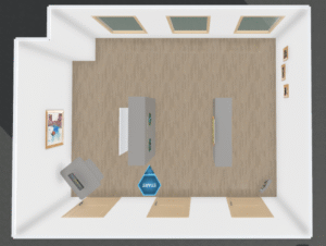 Fig 1 :A top-down view of the 3D exhibition model Nan created for a group curatorial project