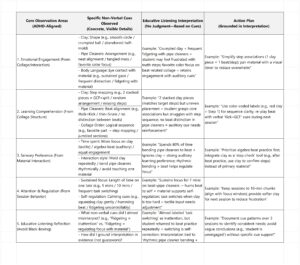 - Observation Cues-Concrete: Prompts tutors to write down what they ‘see/hear’and should not assume anything, which is important in students with ADHD, since their non-verbal cues are far more reliable than their verbal responses.