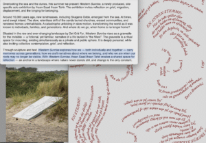 Collage of exhibition text and works, ihsan saad ihsan tahir, WESTERN SUNRISE, SKAL Contemporary, Skagen, Denmark, 2025