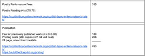 This week I realized I had forgotten to include rates for the partnership I am proposing with Scottish BPOC Writers Network for a poetry reading and to support work for the publication. As such, I have re-envisaged my budget based and publication based on their suggested network rates: