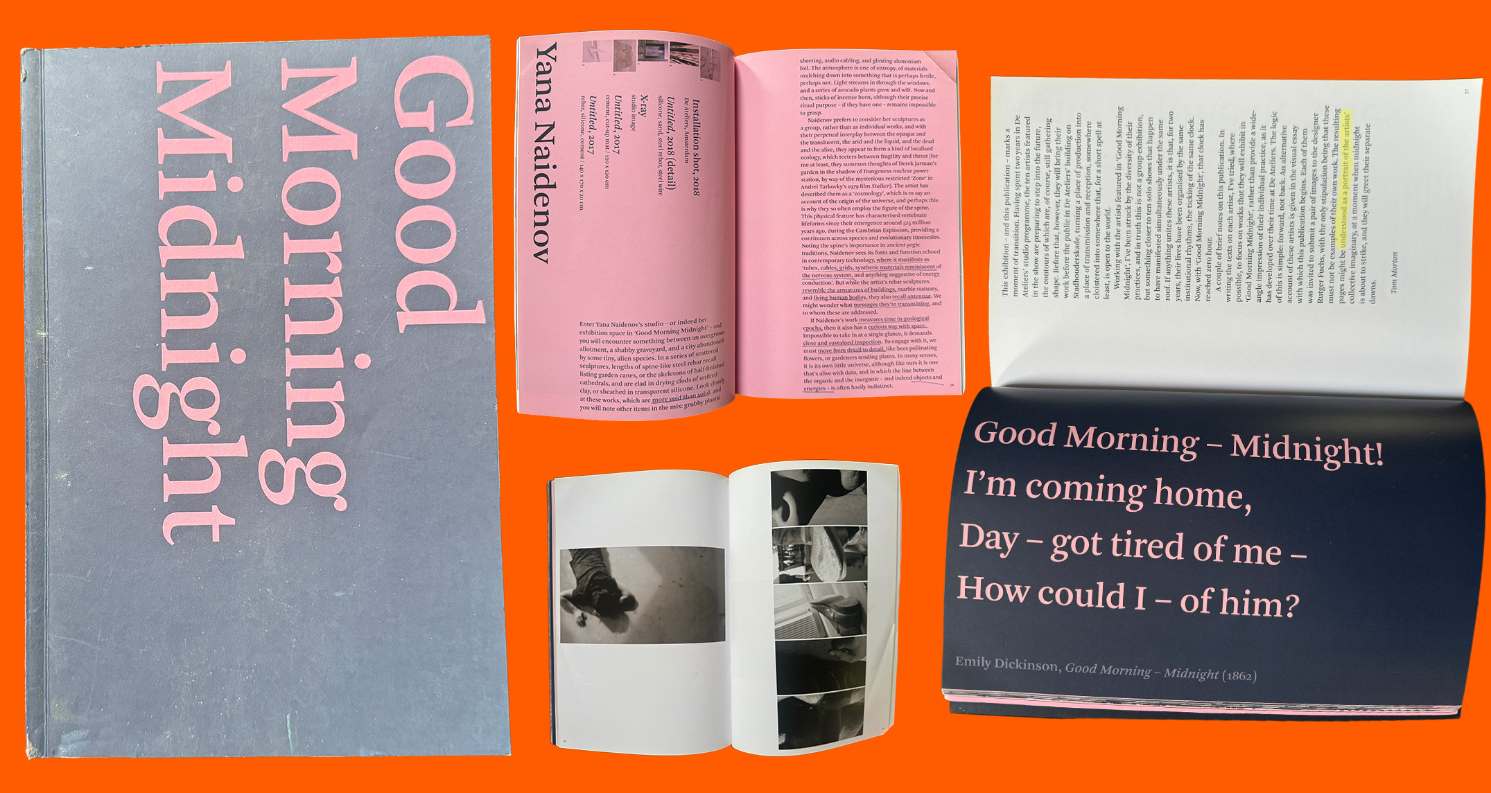 Collage of spreads & cover of Good Morning Midnight exhibition publication. Morton, Tom and Boogerd, Dominic van den, Good Morning Midnight / Offspring 2018, Amsterdam, NL, 2018