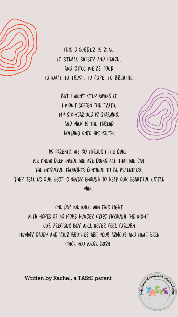 This week, in honour of Eating Disorder Awareness Week, we share a deeply personal poem written by a TAStE PaCT parent.
