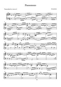 - a on sixth course on beat 1 of bar 12 a likely mistake, this has been corrected to an h on the sixth course, sounding as a D3 in the transcription and performance.