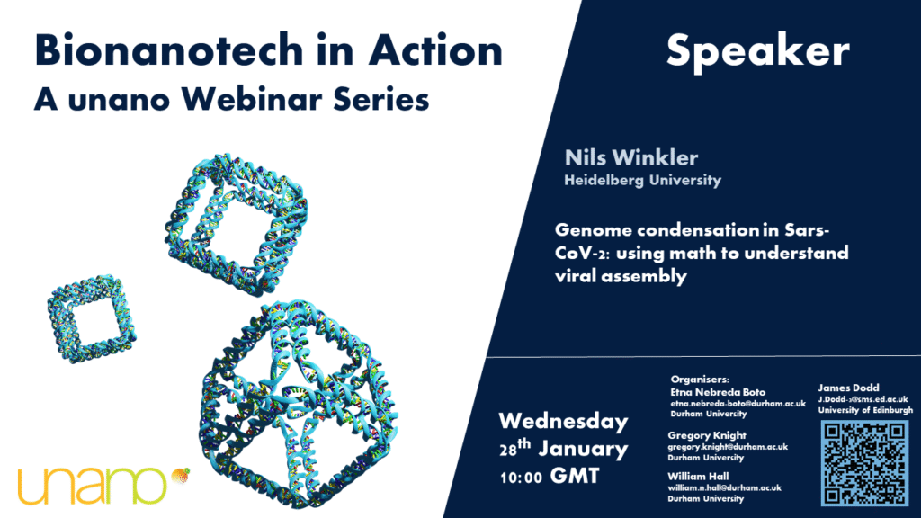 The unano webinar series is co-hosted by Dr Katherine Dunn’s research group at the University of Edinburgh and Prof Jonathan Heddle’s group at Durham University. Lucy Epton at Durham is in charge of devising the webinar schedule, and if you are interested in giving a talk for us please contact her by email at lucy.epton@durham.ac.uk. James Dodd at Edinburgh is in charge of maintaining the blog and running the webinar platform and can be reached by email at J.Dodd-3@sms.ed.ac.uk.