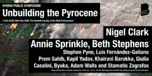 What insight does this planetary perspective offer to those working in built-environment and creative disciplines, and vice versa? How has the Pyrocene been built? How might we begin to unbuild or build otherwise? How might fire help us to break down and rethink the category of the ‘human’? How do we queer and decolonise the Pyrocene?